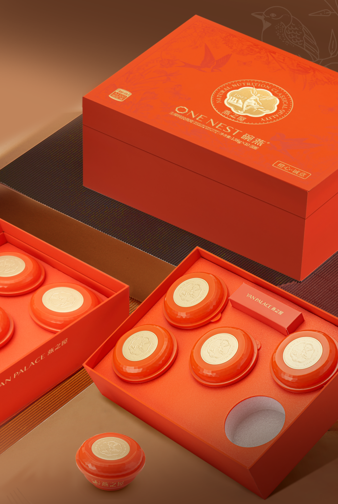 為增強(qiáng)禮盒的創(chuàng)新性與實(shí)用性,《碗燕M100·橙意款(橙心·誠意)生椰桃膠燕窩》禮盒內(nèi)部采用雙層式結(jié)構(gòu)設(shè)計,使其具有更大的承裝空間。產(chǎn)品擺放合理有序、易于取出,便捷實(shí)用。同時,貼心設(shè)計勺盒結(jié)構(gòu),精巧美觀,獨(dú)具匠心。包裝色彩靈感源自時尚品牌愛馬仕的標(biāo)志性橙色,高貴神秘、鮮艷明麗,不僅釋放輕奢氣質(zhì)與年輕活力,更向消費(fèi)者傳達(dá)感恩與關(guān)愛,希望每個使用者都能在打開包裝時感受到燕之屋品牌真摯的情感關(guān)懷。
