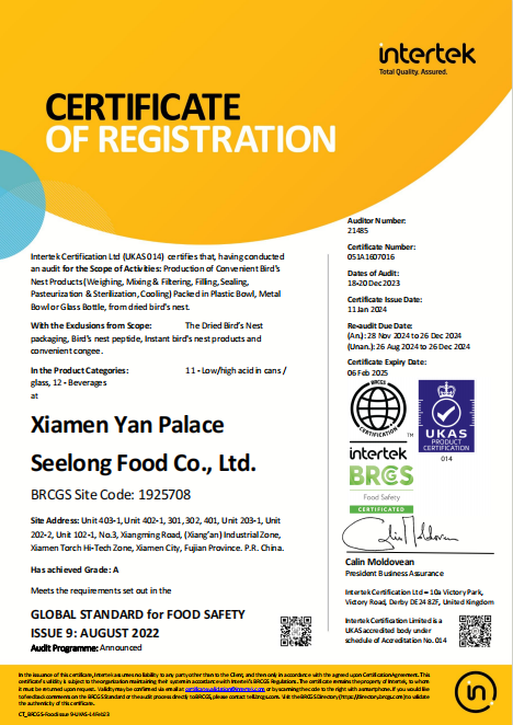為了響應(yīng)美國官方的高標(biāo)準(zhǔn)要求,燕之屋分別通過了HACCP食品管理體系認(rèn)證、BRC全球食品安全標(biāo)準(zhǔn)認(rèn)證、IFS國際卓越標(biāo)準(zhǔn)認(rèn)證和食品出口備案資質(zhì),參加了美國FDA指定的由中國檢驗(yàn)檢疫科學(xué)院舉辦的BSPC培訓(xùn),并順利通過考核獲得出口資格,通過了FDA、FCE、SID注冊(cè)。此外,燕之屋更主動(dòng)將產(chǎn)品送至權(quán)威檢測(cè)機(jī)構(gòu)SGS,152項(xiàng)指標(biāo)檢測(cè)全部合格通過,印證燕之屋卓越產(chǎn)品力。2024年10月25日,燕之屋在廈門海關(guān)系統(tǒng)報(bào)檢通關(guān)。之后,燕之屋旗下高品質(zhì)燕窩產(chǎn)品冰糖官燕(60gx6、60gx12)、碗燕·禧孕款(80gx3)、碗燕·尊享款(158gx6)、碗燕·甄愛款(108gx6)、碗燕·濃鮮款(138gx10)通過美國食品藥品管理局(FDA)審批,順利運(yùn)抵紐約,正式上架開售,為當(dāng)?shù)叵M(fèi)者帶來來自中國的高端尊貴滋養(yǎng)。