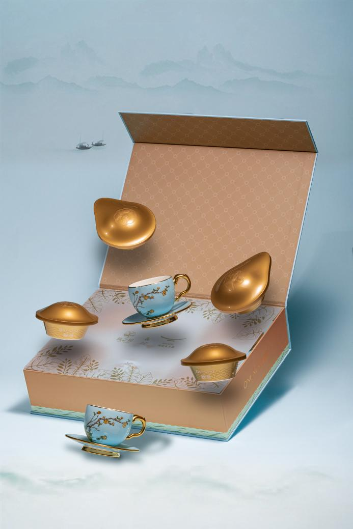 燕之屋x永豐源花燕和鳴·國韻禮,內(nèi)含碗燕·尊享款(180g)4碗、永豐源夫人瓷·西湖藍150ml咖啡杯碟4頭;燕之屋x永豐源花燕和鳴·家韻禮,內(nèi)含碗燕·榮耀款(108g)4碗、永豐源夫人瓷·西湖藍150ml咖啡杯碟4頭,瓷器與燕窩組合,別具一格。